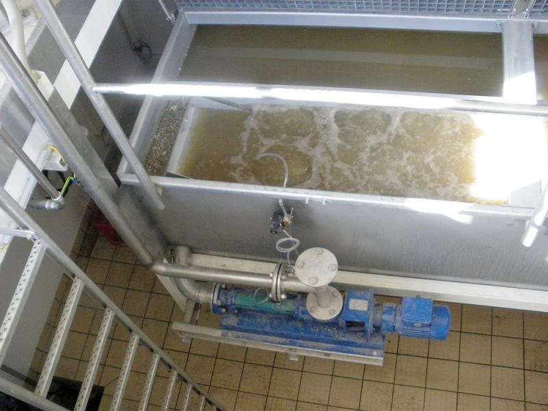 Eine Pumpe zieht das Fett in Intervallen ab, so dass es nicht in den Sandfang gelangen kann.